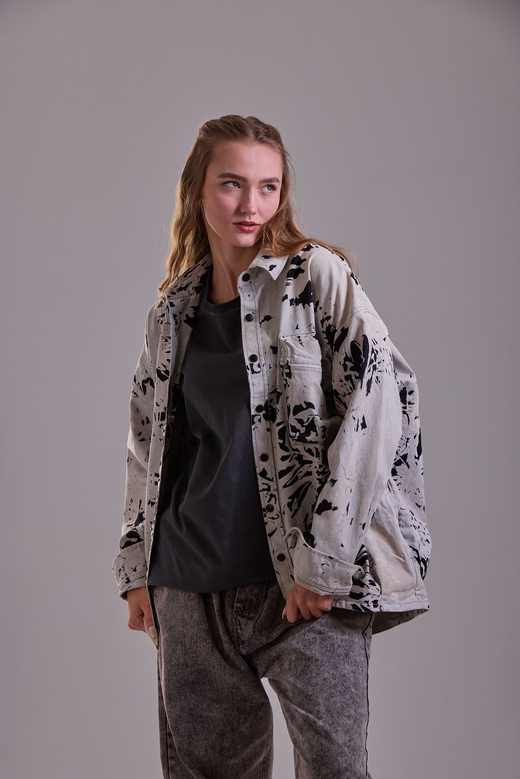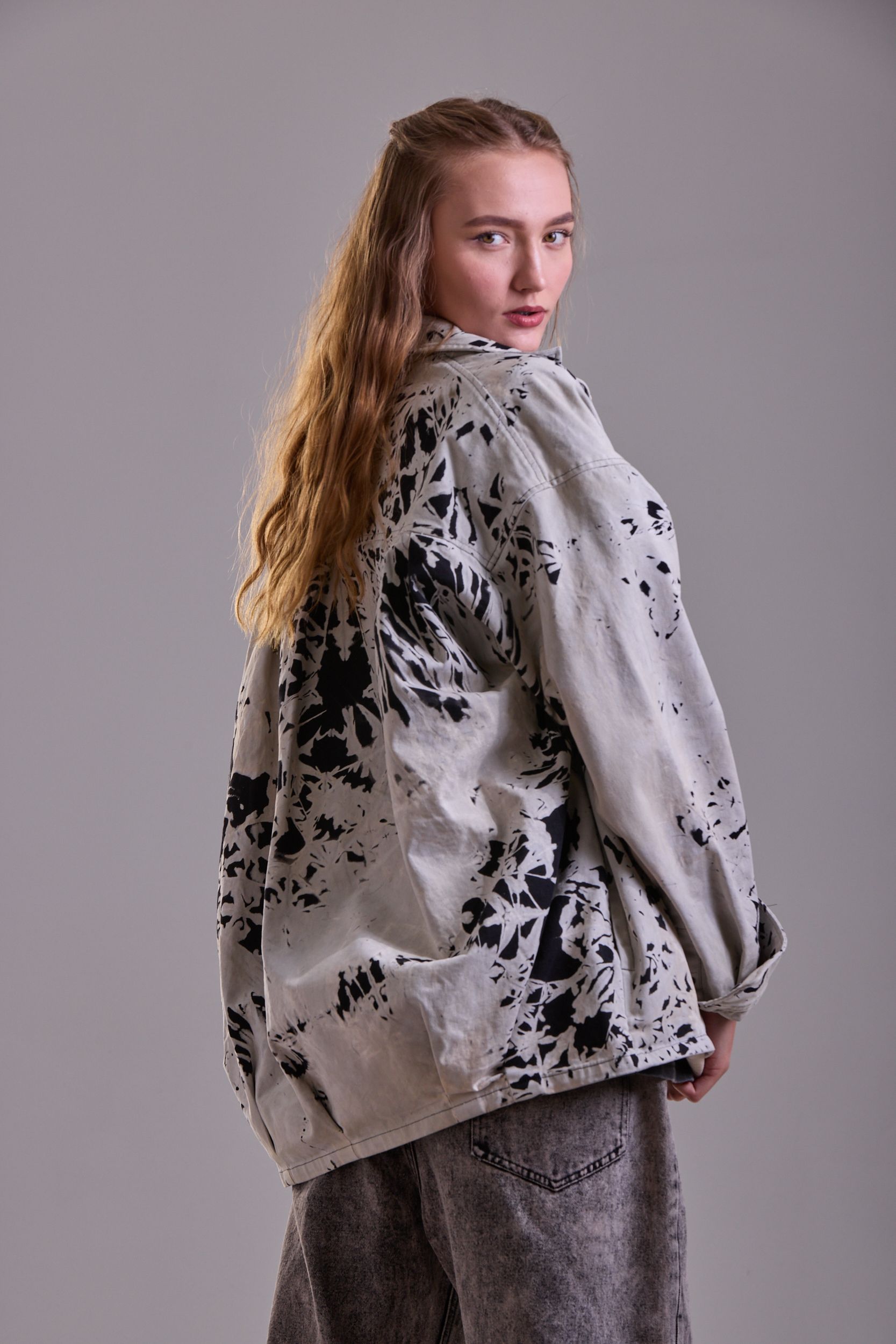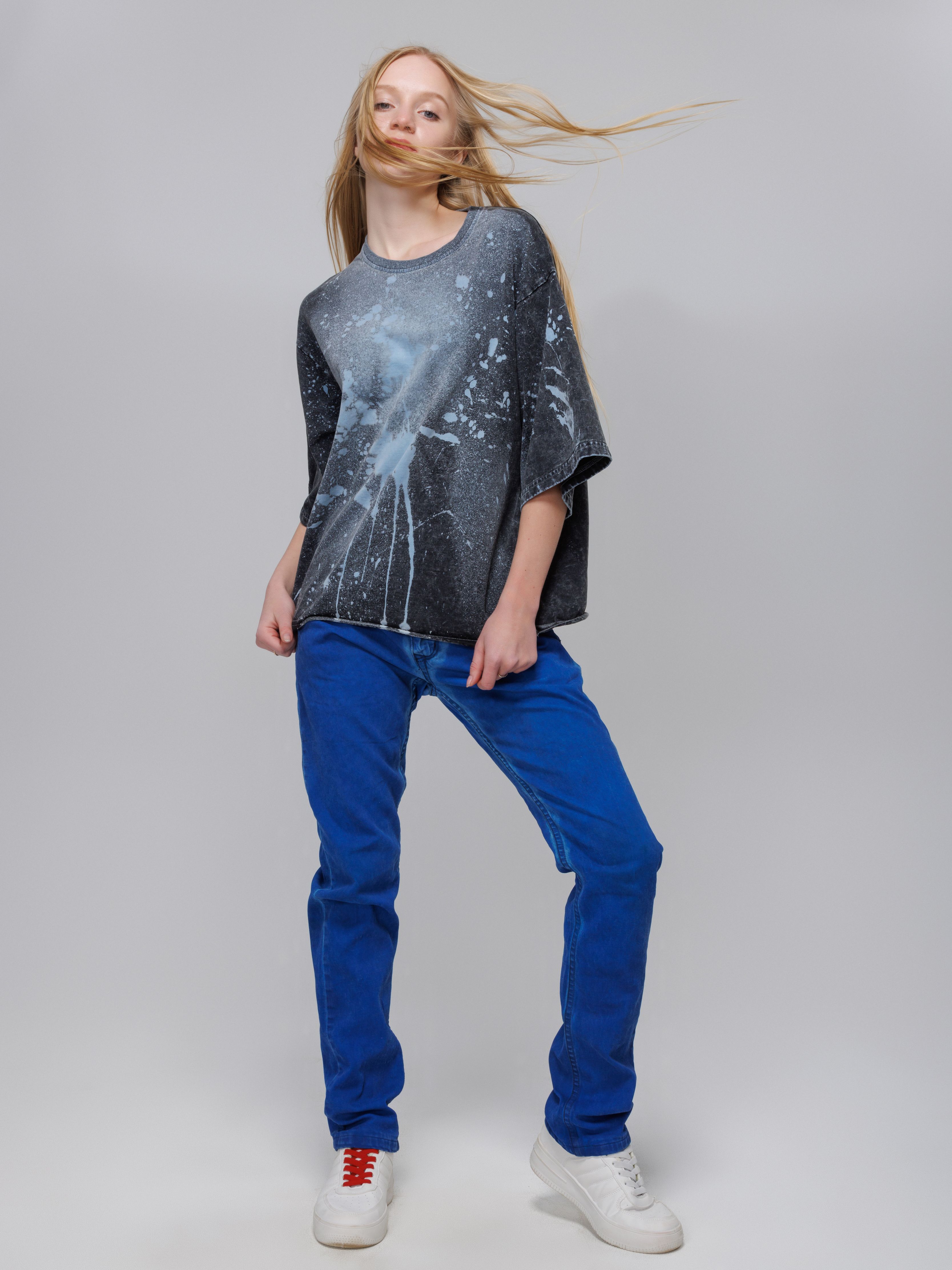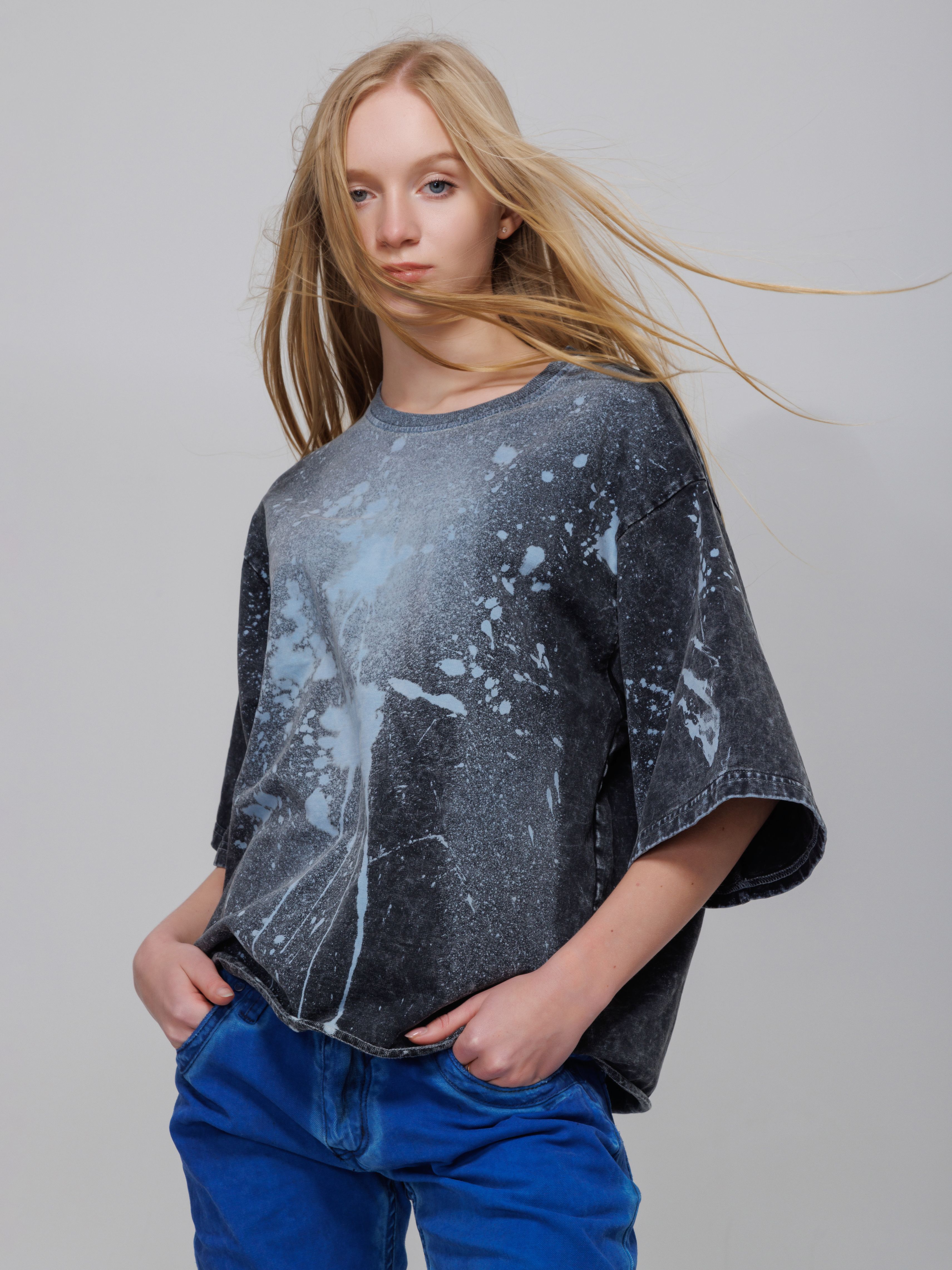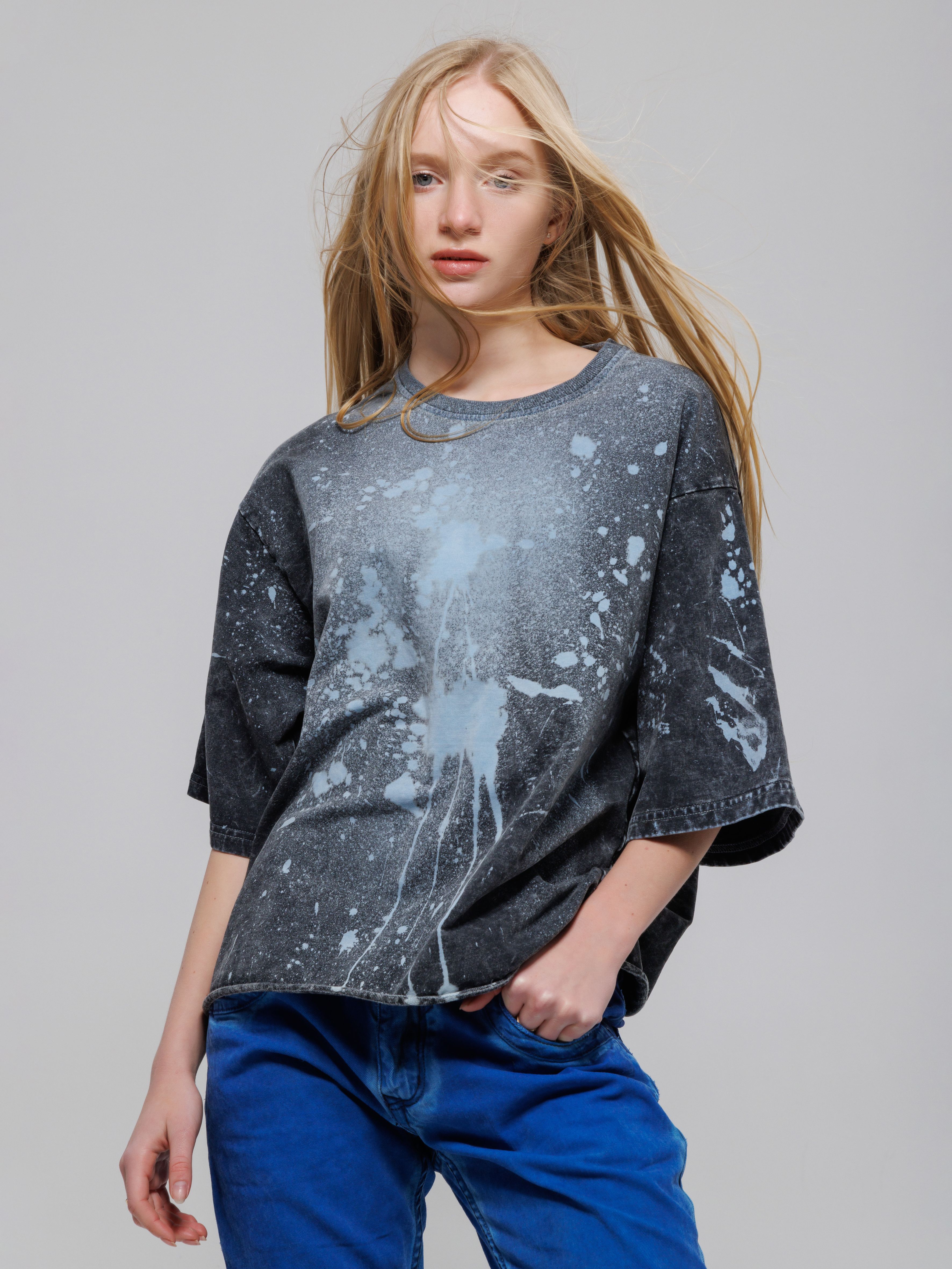 Седина на ткани за счет нанесения белого полимера и набрызгивание краски