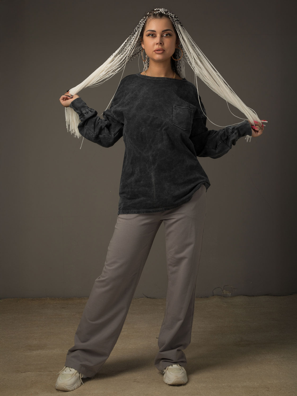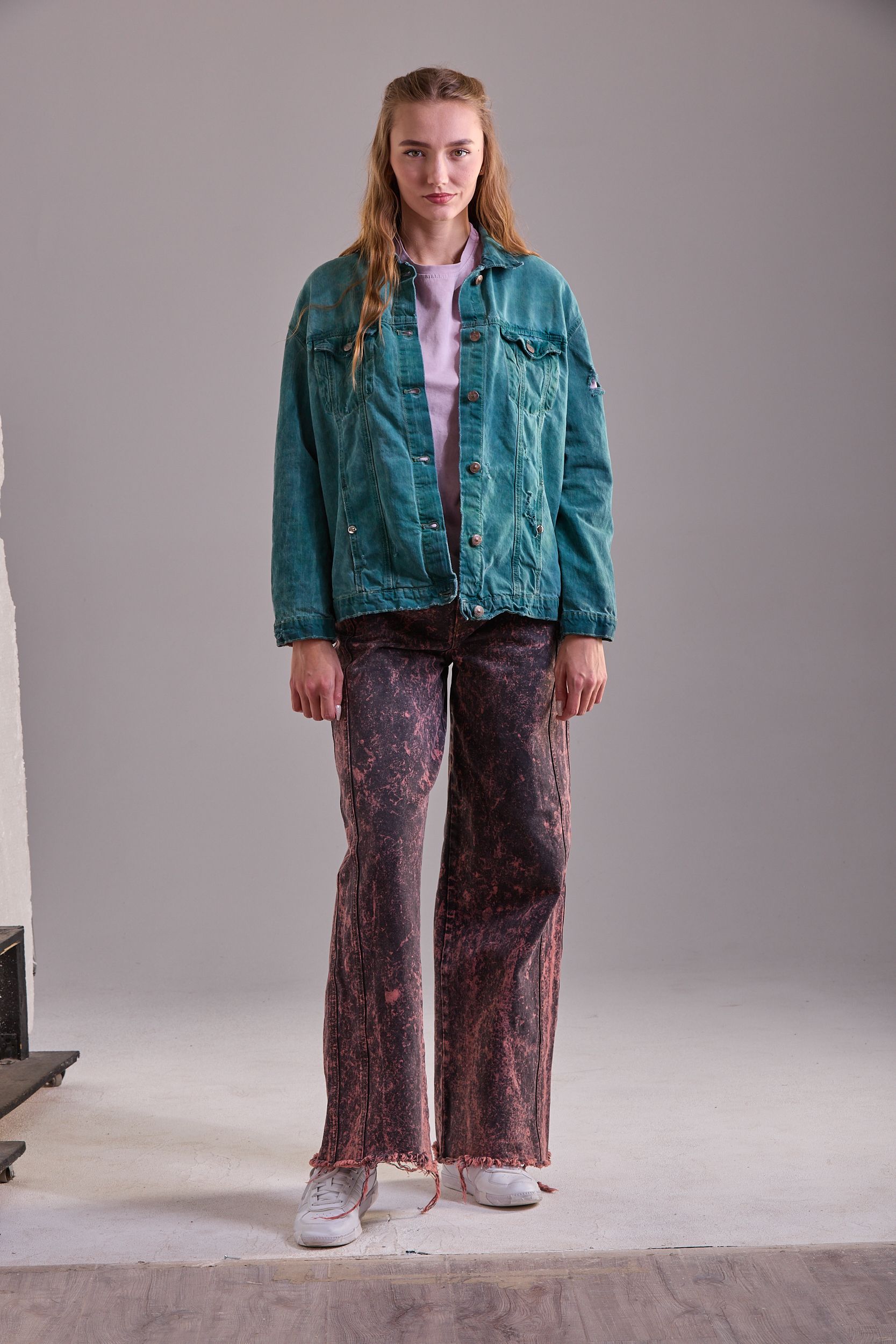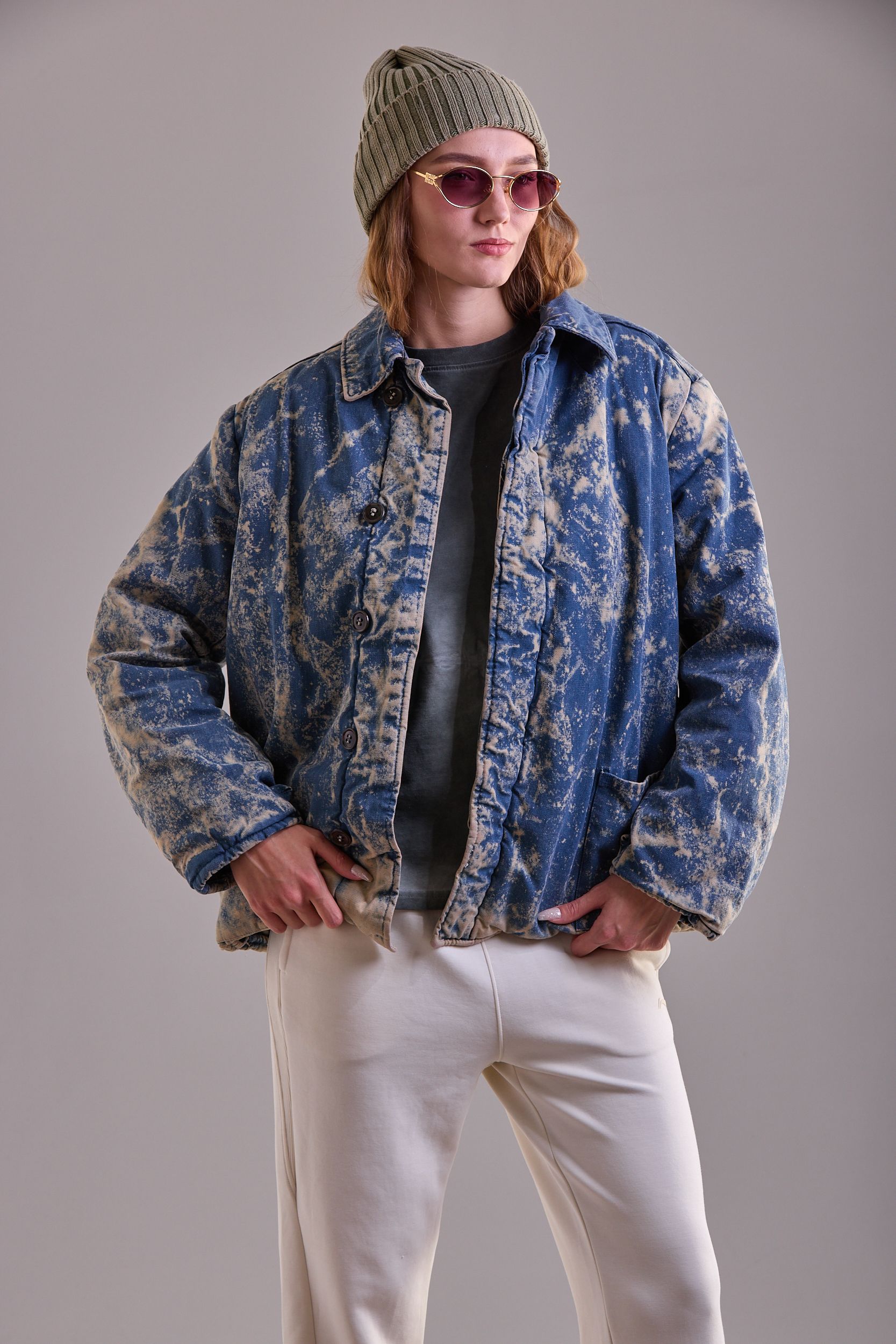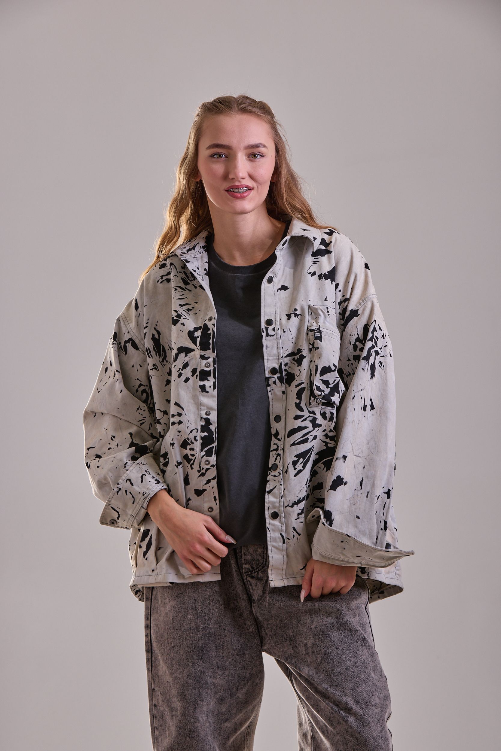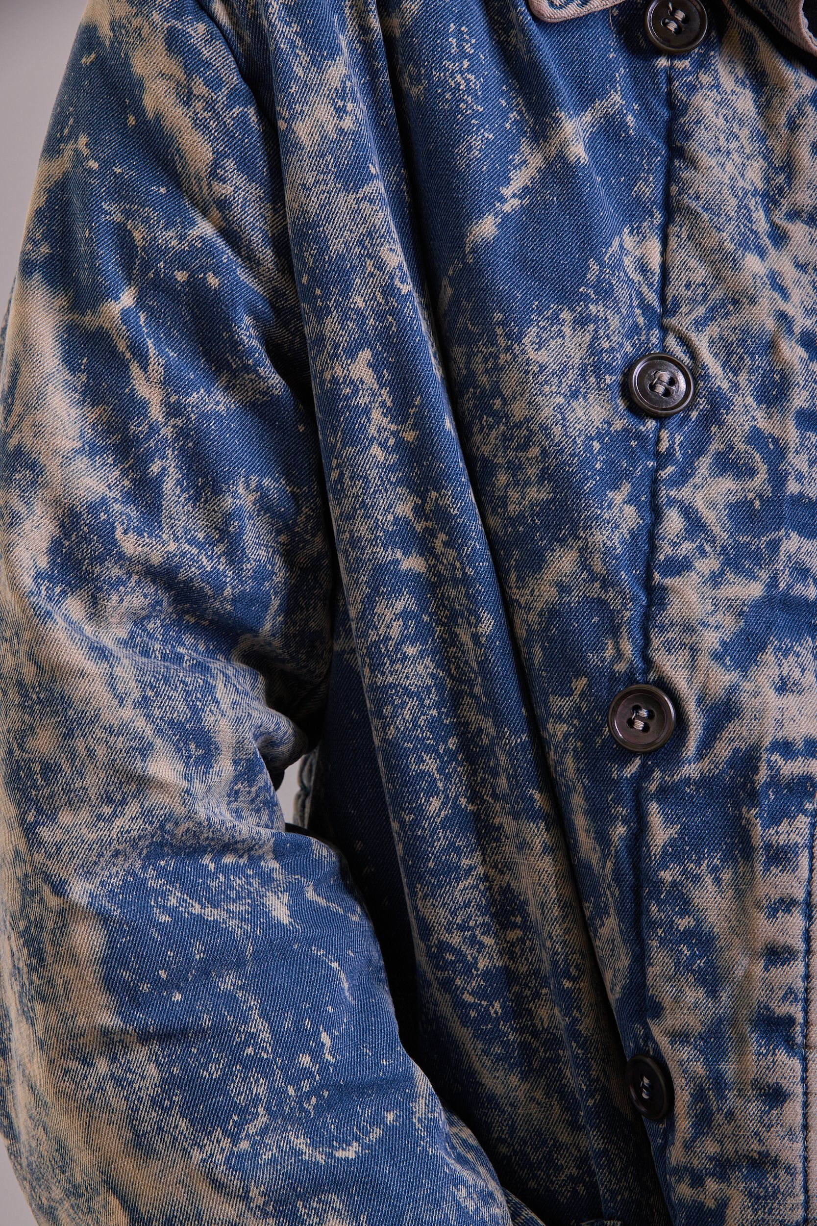 Седина на ткани за счет нанесения белого полимера и набрызгивание краски